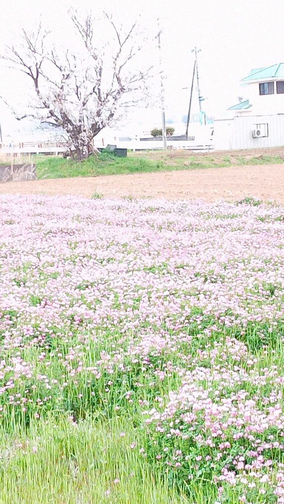 🍓を買いに行った帰りに、🍓ハウスや田んぼの多い地区で、レンゲ畑を見つけました。化学肥料が進歩したので、最近は家の近隣でも畦に少し見られる位で、こんなに広く咲いているのは久しぶりに見ました。多分自然の肥料作りを大切にしている農家の方なのかな、と思いました。(雨が降り出しそうだったので青空ではないのが残念😩)