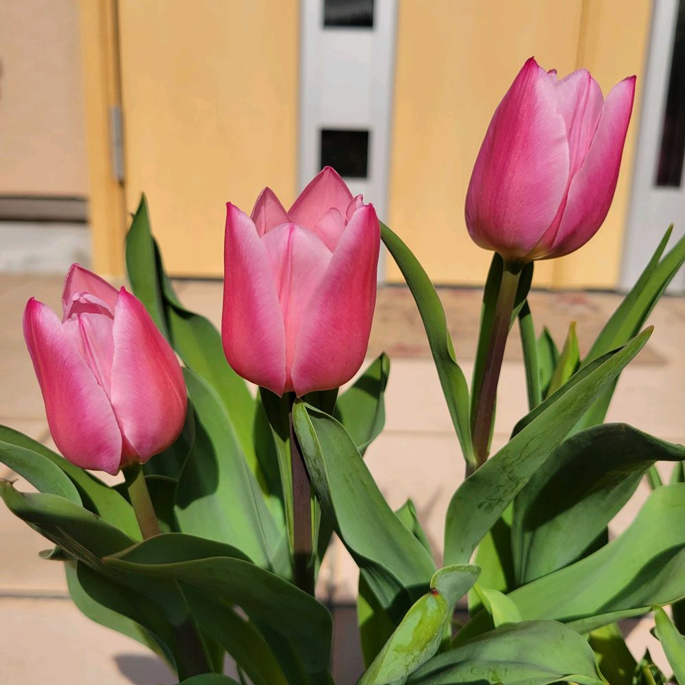 トリプルデッカー寄せ植えのチューリップが開花中🌷