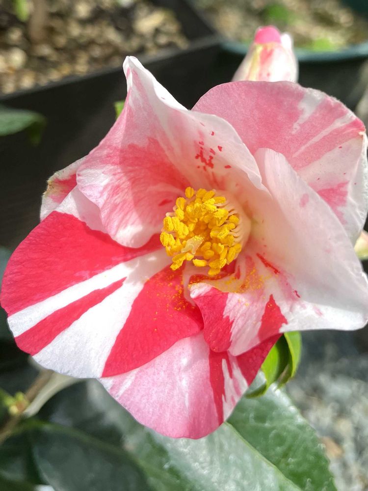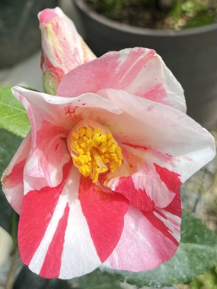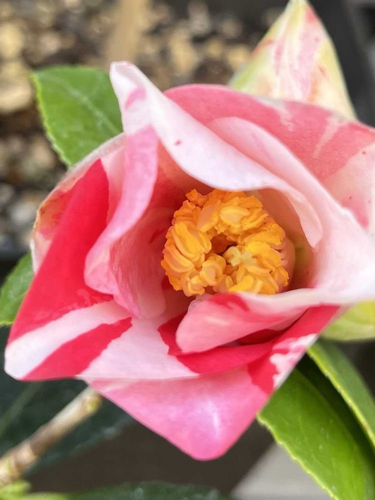 椿・薬師の光💕始めましての開花です🎵資料がほとんどなかったコですが、花姿&花色ドストライクでした❣