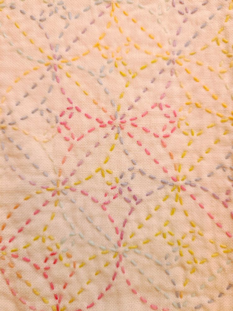 刺し子、とっても細かいですよ♪アップで写真のせました☺️綺麗です⤴⤴