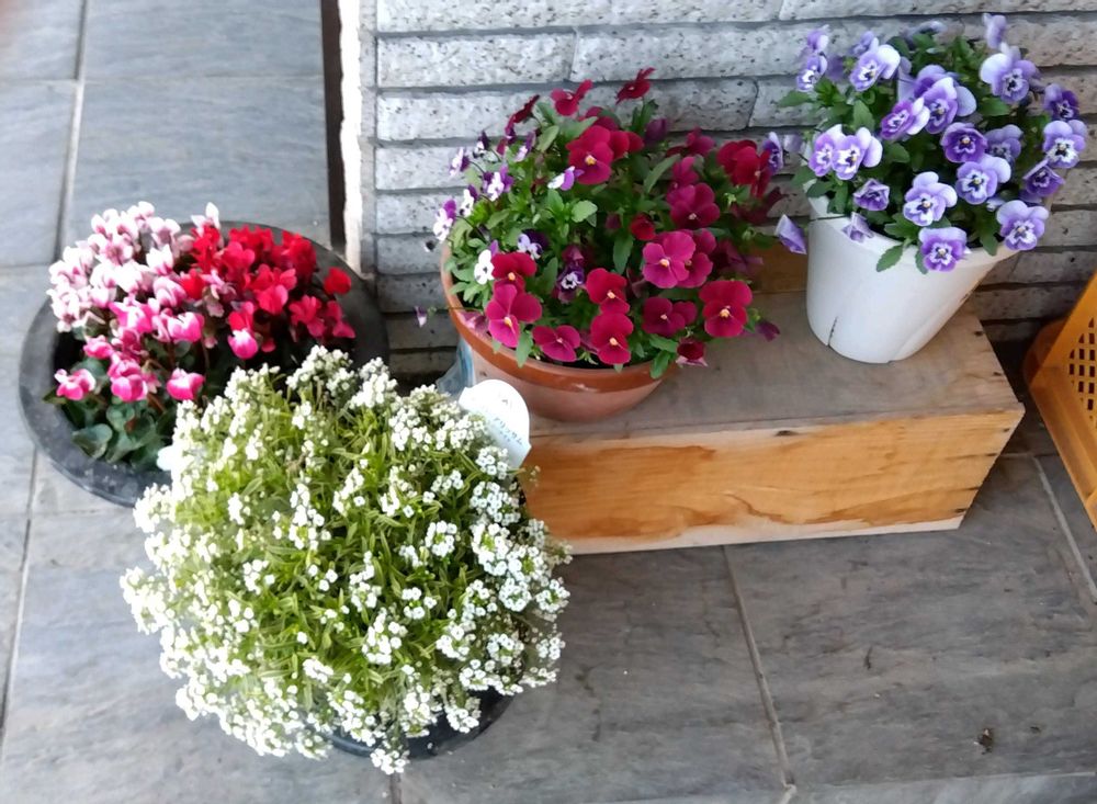 マンションのベランダ & 戸建ての花壇とお庭 ごゆるりとした気持ちを求めて 大切な人と大切な時間を 母娘のdiary #サフィニア #ミルフル #スーパートレニアカタリーナ #スーパーチュニア #スーパーアリッサム #ビューティカル #ビオラ #パンジー #チューリップ #ビオレソイエス #サニーレタス #かつお菜