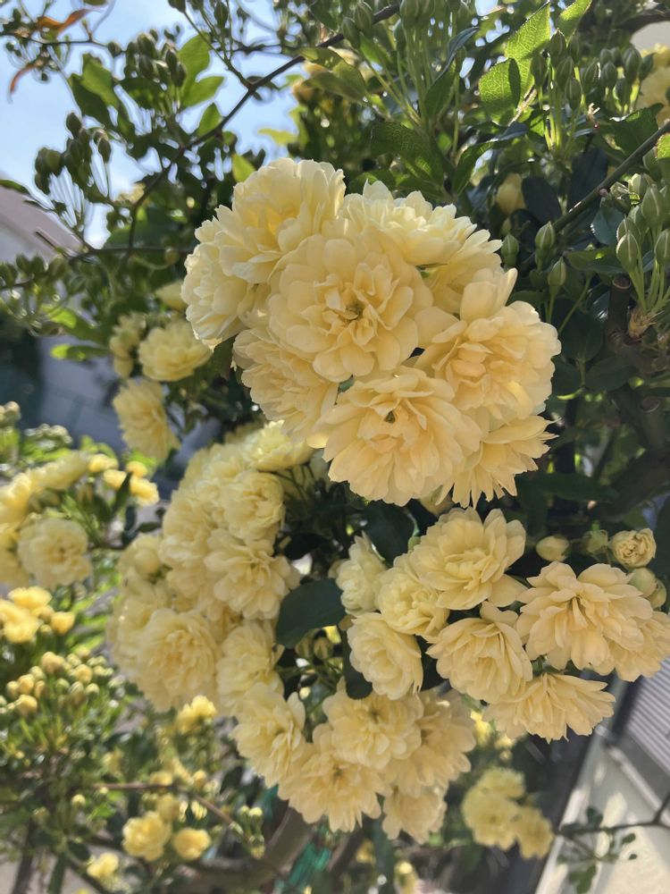 モツコウバラが咲き始めました。ポルトブルーもオデッセイアもつばみがふくらんで開花まであと少し🌹