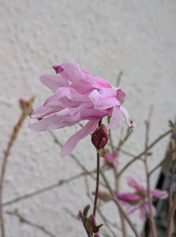 早咲きの桜が、少し開花してまして…Googleレンズで見てみたら「オカメザクラ」と出ました🌸