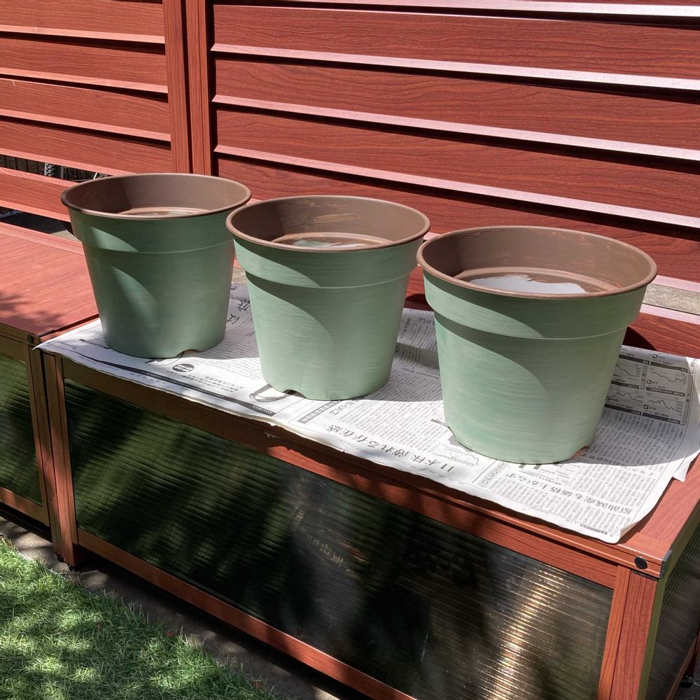 ②100均の灰色のプラ鉢を塗装
