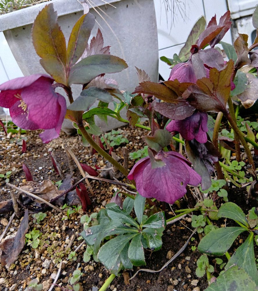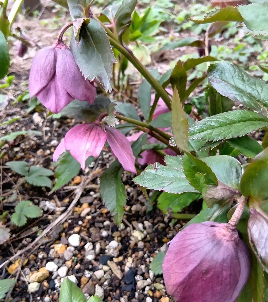 クリスマスローズ咲いてきました 長い間雪の下で頑張ってくれましたよ(*>∀<ฅ).。.:*♡(◍˃ ᵕ ˂◍)