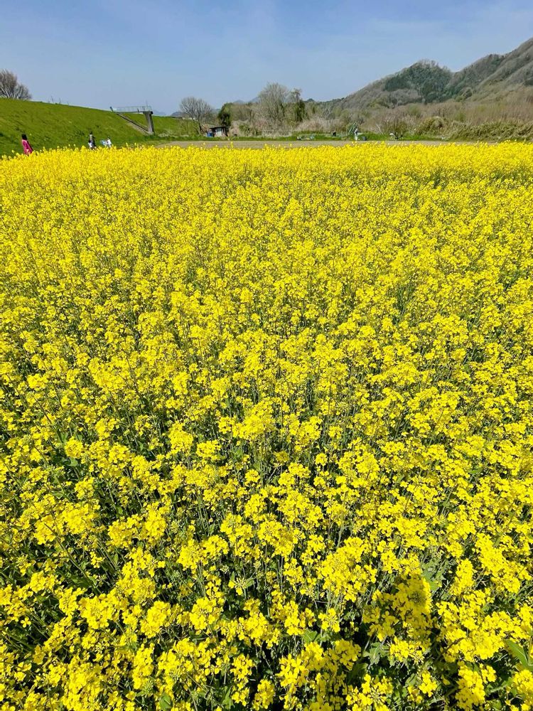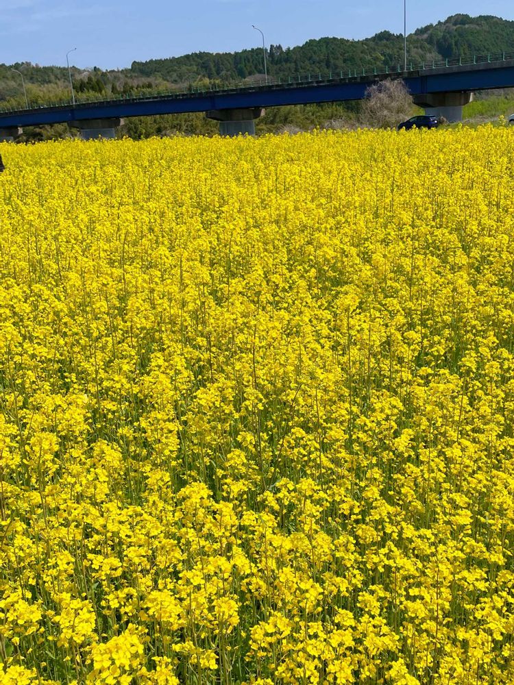 橋の上から一面菜の花の黄色が見えました😄