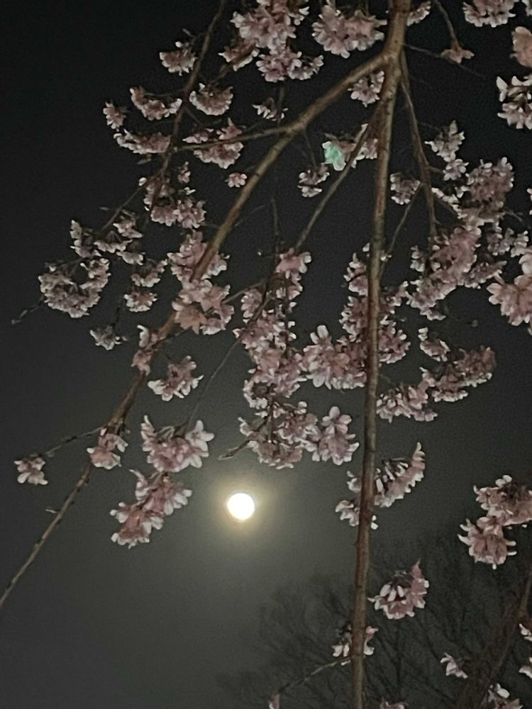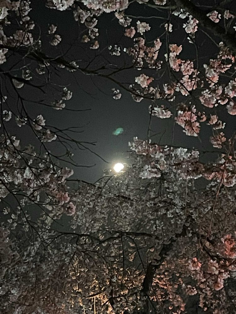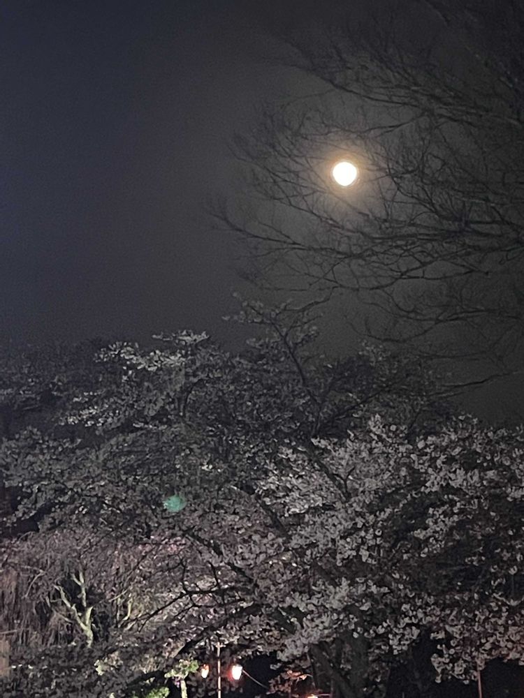 昨夜の夜桜、家から歩いて5分くらいの所でライトアップ。満月は今日ですが、今晩は雨になりそうなので