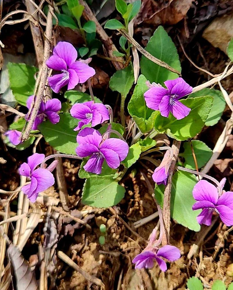 少し離れた場所にはヒゴスミレ、フモトスミレ、シハイスミレ、ニオイタチツボ、ニョイスミレ。