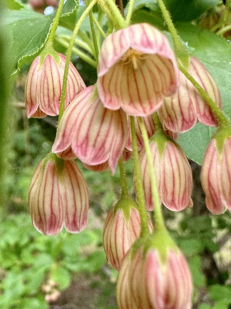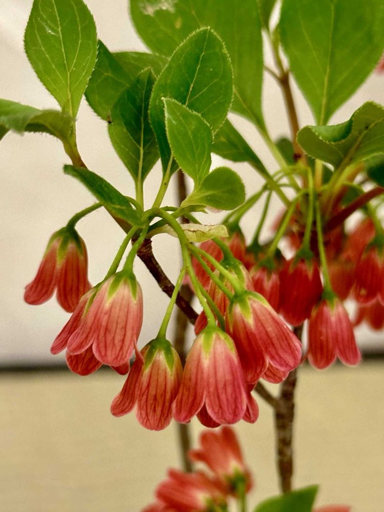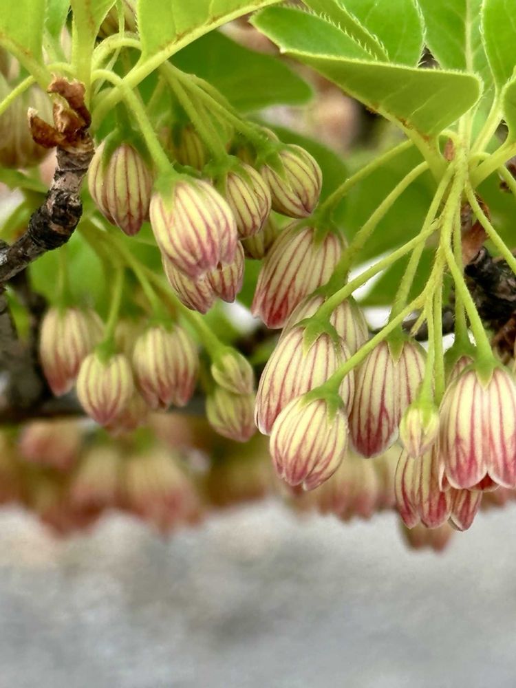 花が風鈴のような形で紅色の筋が入り更紗模様に似ていることから名付けられたサラサドウダン