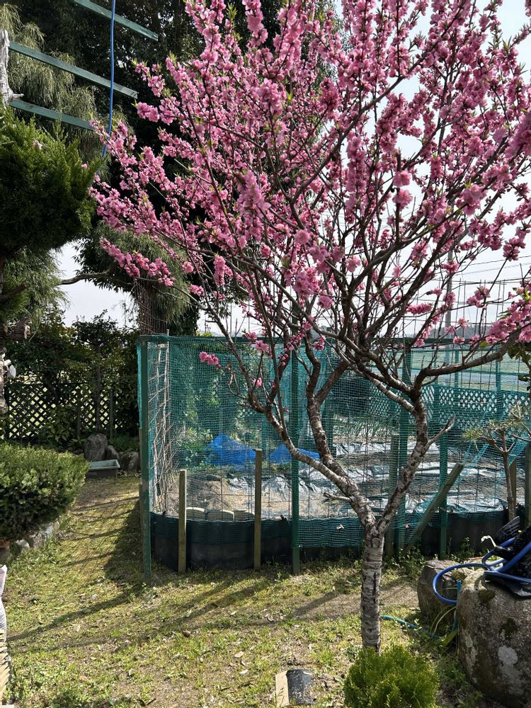 孫の記念樹の花桃の花が満開です🥰🥰