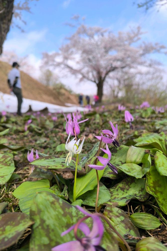 ここには山全体にカタクリ✿が咲き誇り、数万分の一の発生確率する白いカタクリが咲くことでも有名で、自分は5つも見つけパチリ📷 その他この時期ならではのショウ鮫ヶ尾城うえジョウバカマ✿キクザキイチゲ✿イカリソウ✿八重に咲くシデコブシ✿珍しいナガハシスミレ✿エンレイソウ✿オオイワカガミ✿なんかも。