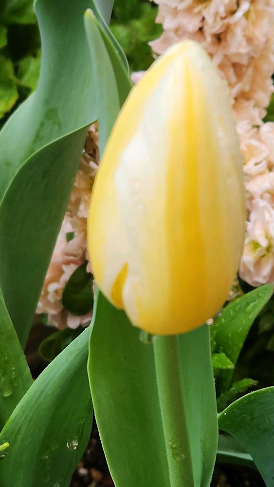 チューリップ、はちみつミルク、おいしそーです。眺めながらの、出勤。雨降ってるから、ヤマアジサイ、少し外にだして、水分補給させていたら、しまい忘れ。折れずに、無事を祈るばかりです。