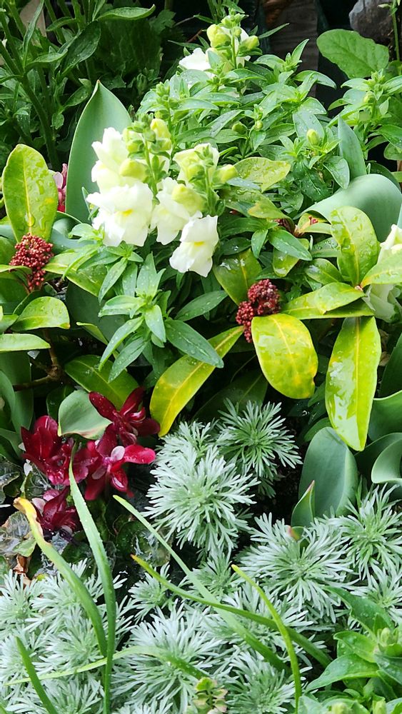 金魚草も、スキミアの間から、顔を出してくれてます。