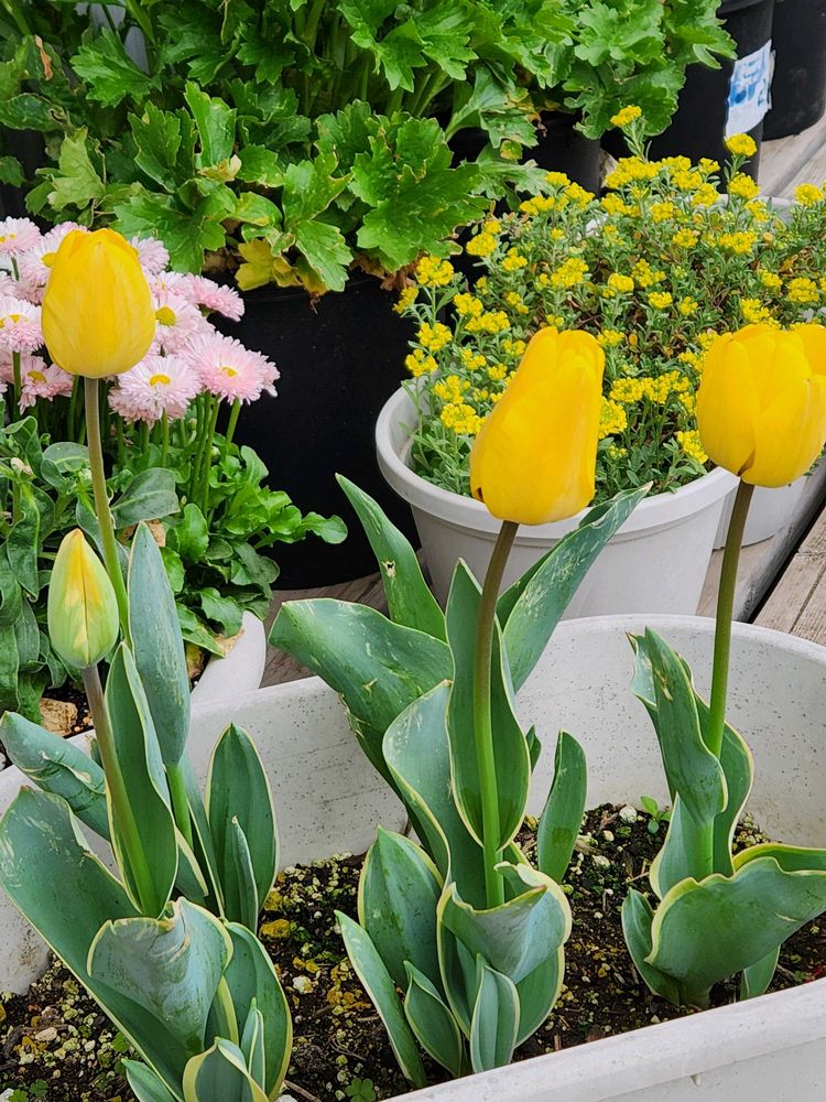 黄色の🟡🟡🟡チューリップ🌷🌷🌷さんはやはり明るい感じで、今日のような天気では、一際映えますね❣️