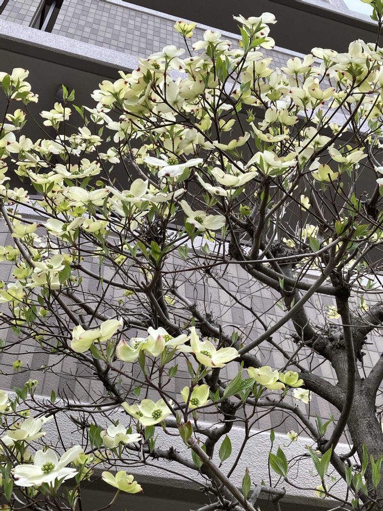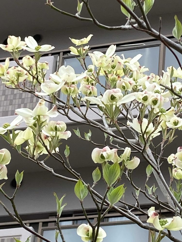 まぁ〜⁉️ もうハナミズキのお花が咲いているのですねー♪♪♪
