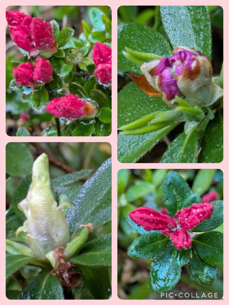 ③赤い、葉も花も小さなツツジ 少し咲き出しました