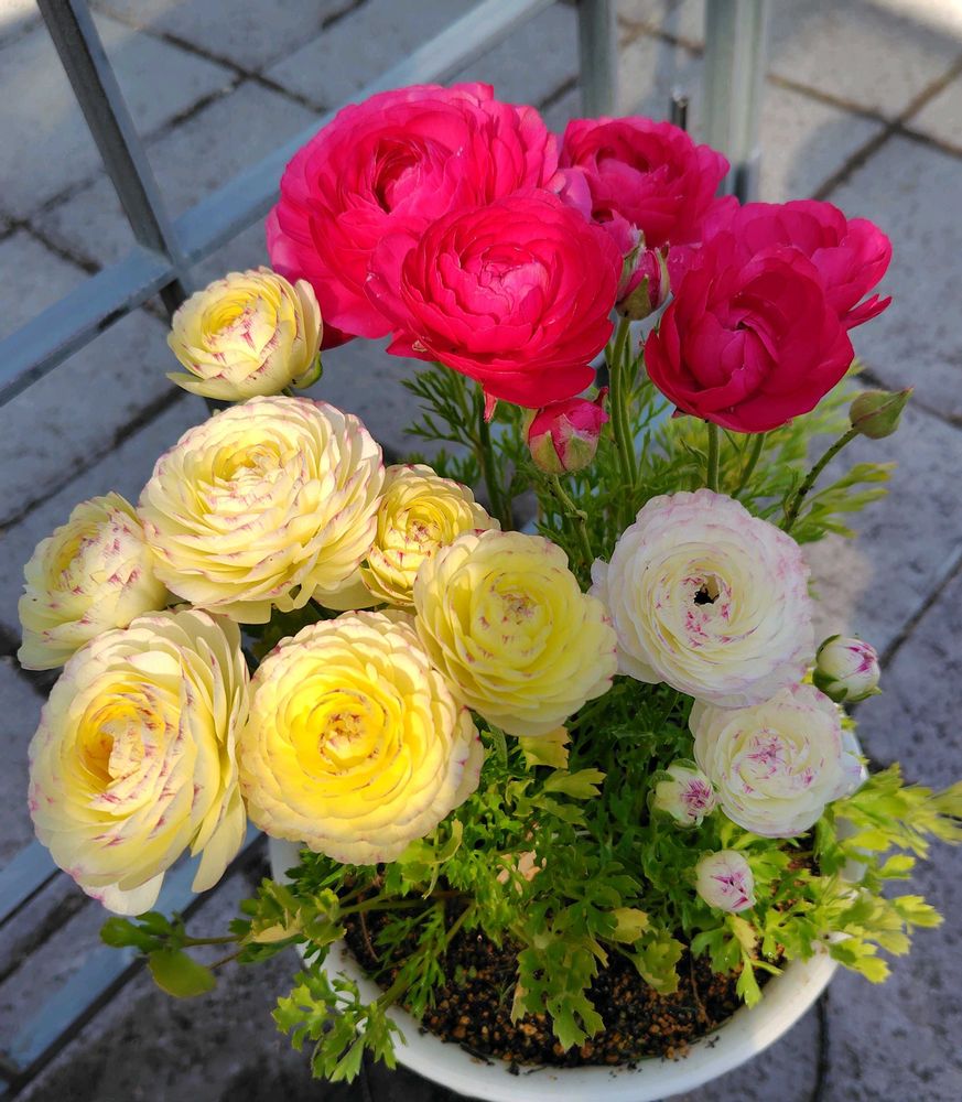 @ふうふうさん宅のラナンキュラスさんたち可愛らしいく咲いてますね🩷🤍💛