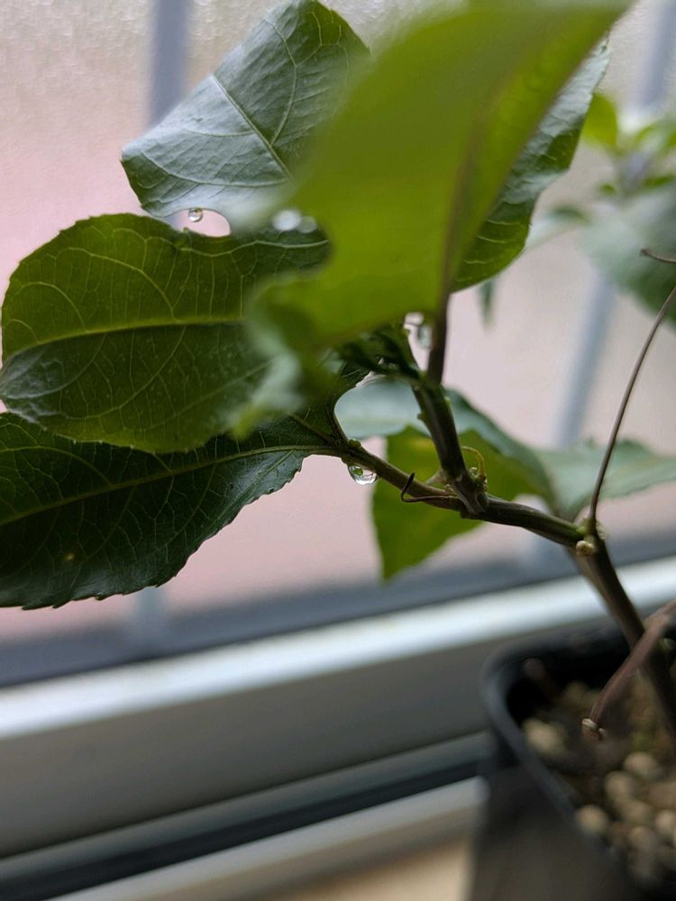 昔育てていたパキラが時々透明な甘い雫💧を出してくれました。