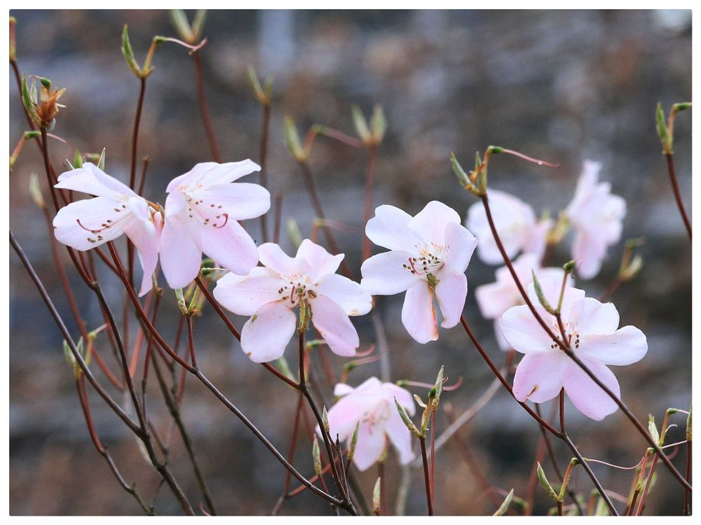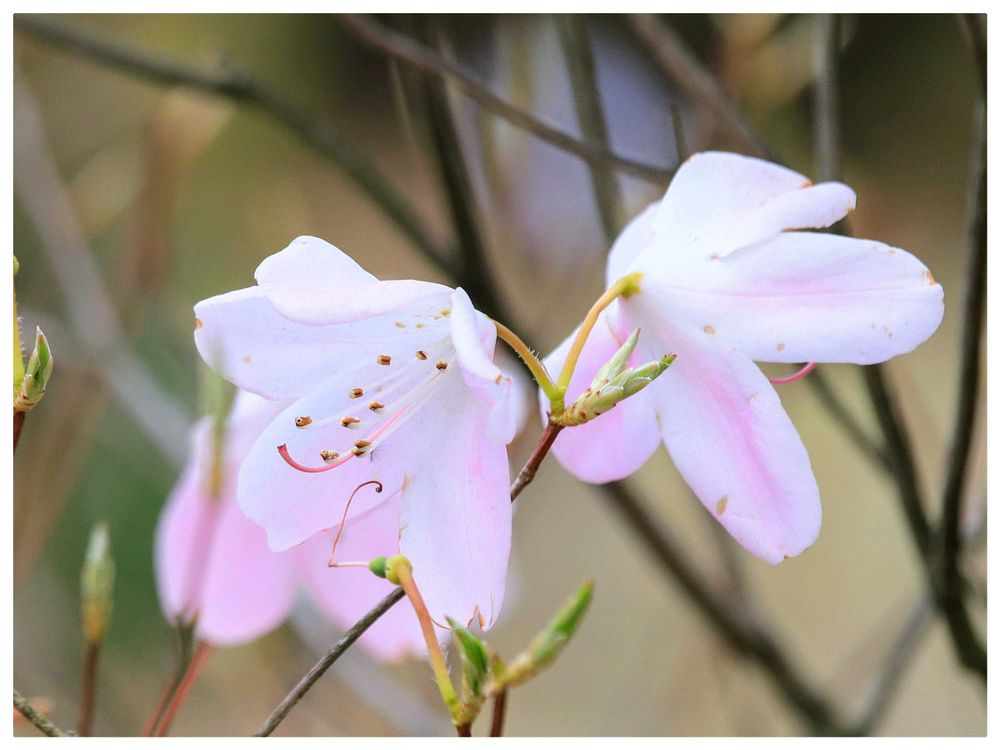 ゴヨウツツジの一種、アカヤシオの花弁は白に淡い赤が入り透明感もあり、優しい感じがしますね👀♪