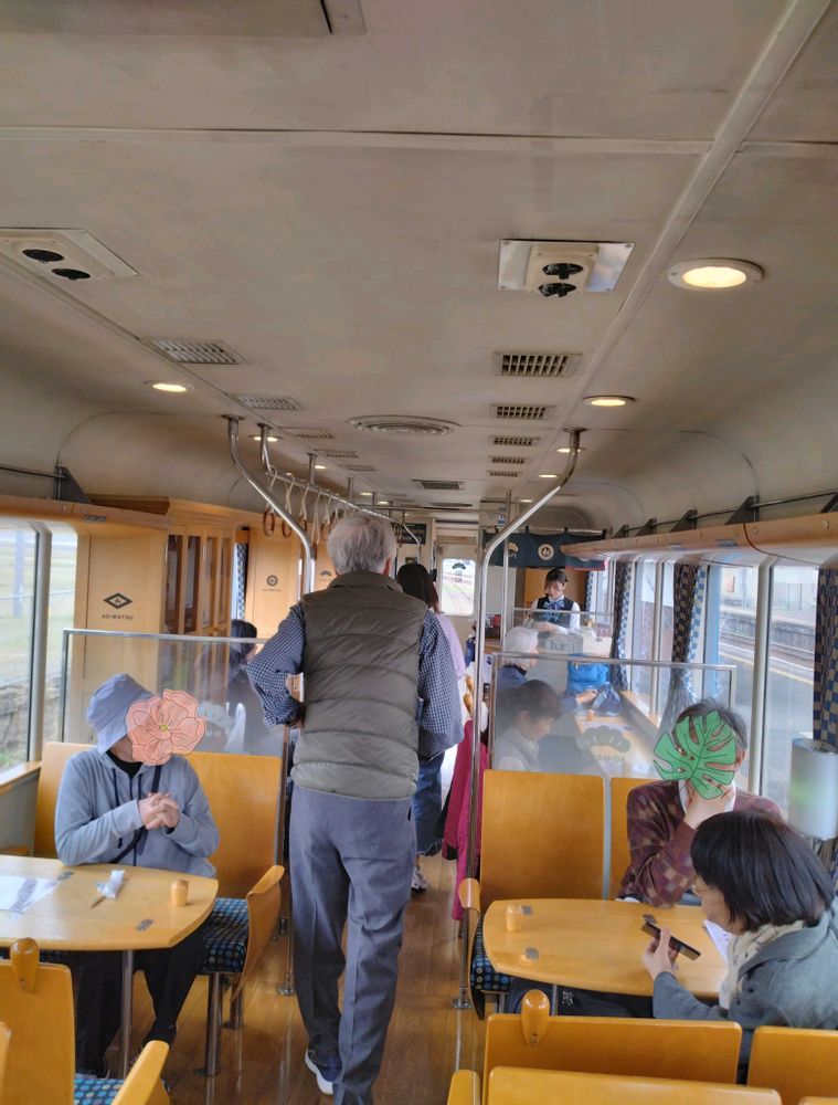 あおまつ号とやらに乗れただけで、旅が何倍も楽しくなりますね、カフェになってるなんて〜