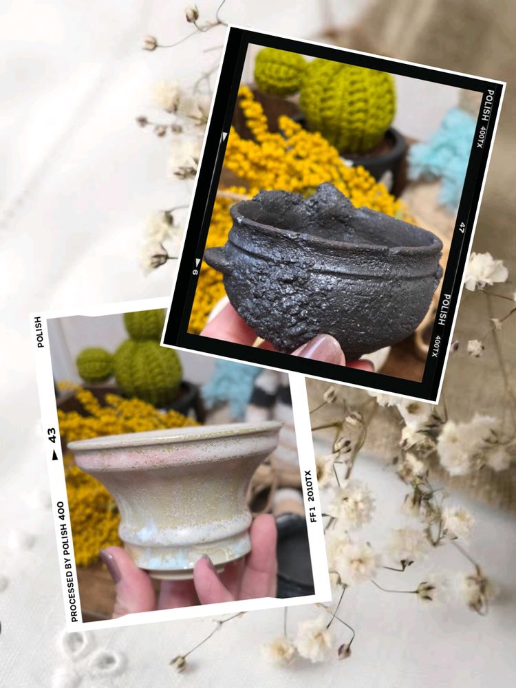 さすが目利きの銀次(時)チョイス🫶🏻小春日和よろしくなほんのり桃色と水色が出た鉢と、がじゃがしゃのクセ鉢というまさかのお2つも!ありがとございます☺️