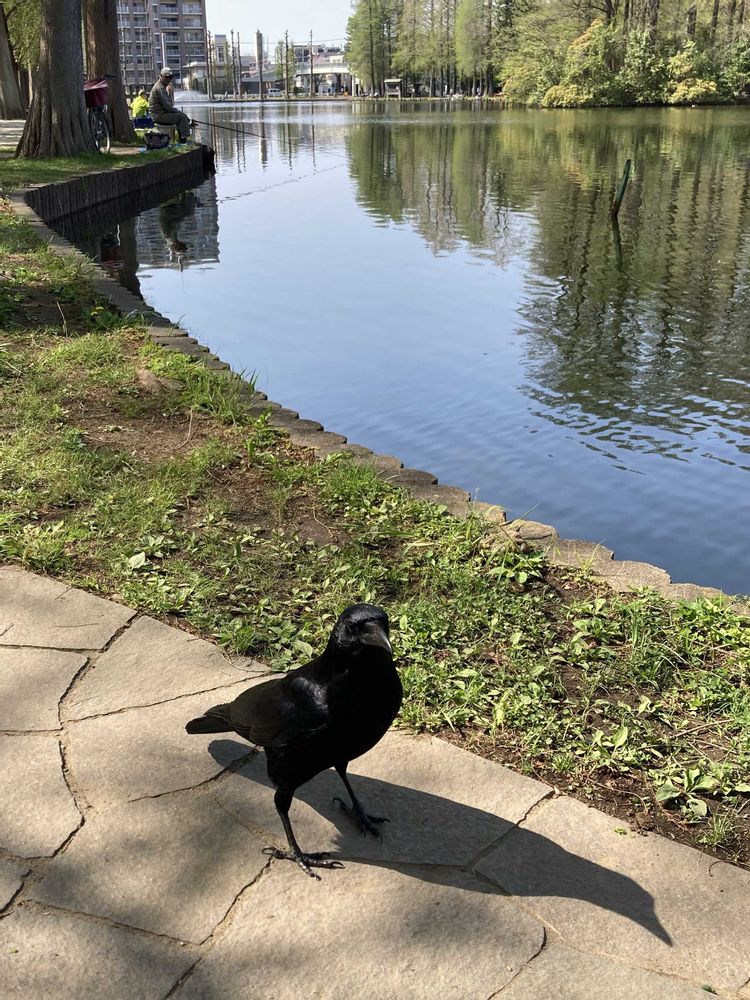 遊歩道を歩いているも、人慣れしたカラスさんが、ヒョコヒョコ歩いて近づいてきました🐦⬛♬