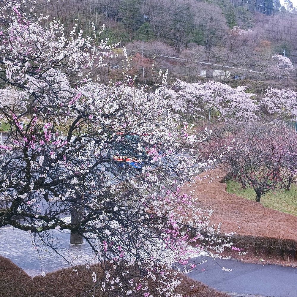 花桃を見に昼神温泉に来ています😃