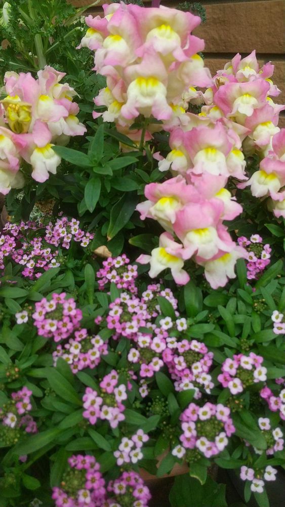 ピンクのキンギョソウは、ピンク系のアリッサムと植えて見ました。😄