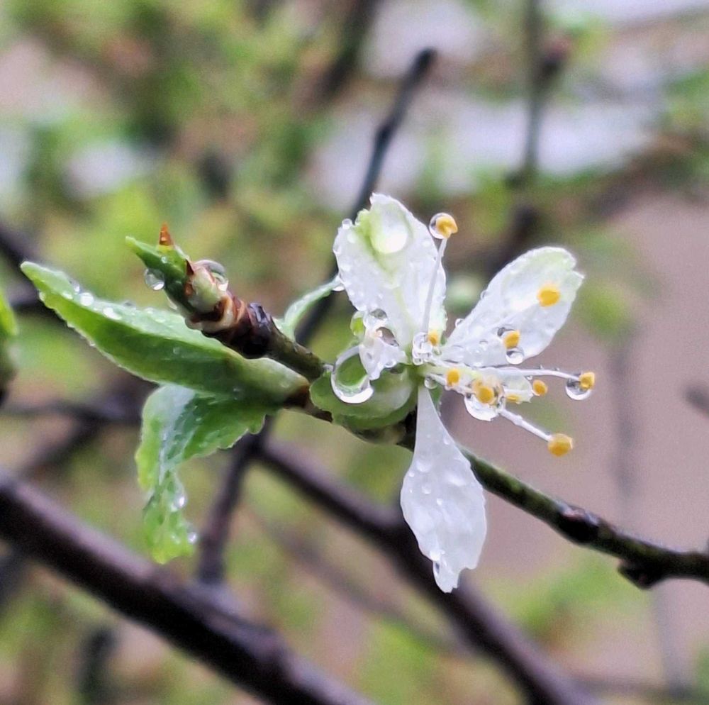 ⑤雨の中、いつの間にかプルーンのお花が咲いていました🎵