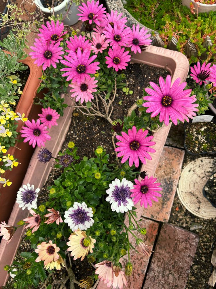 ⑤ずっと植えっぱなしだったオステオさん🌸…木質化しちゃっててスカスカになったので、去年お迎えしたオステオさん💜🤍を真ん中に植え足したらようやく花を咲かせてくれました😊✨