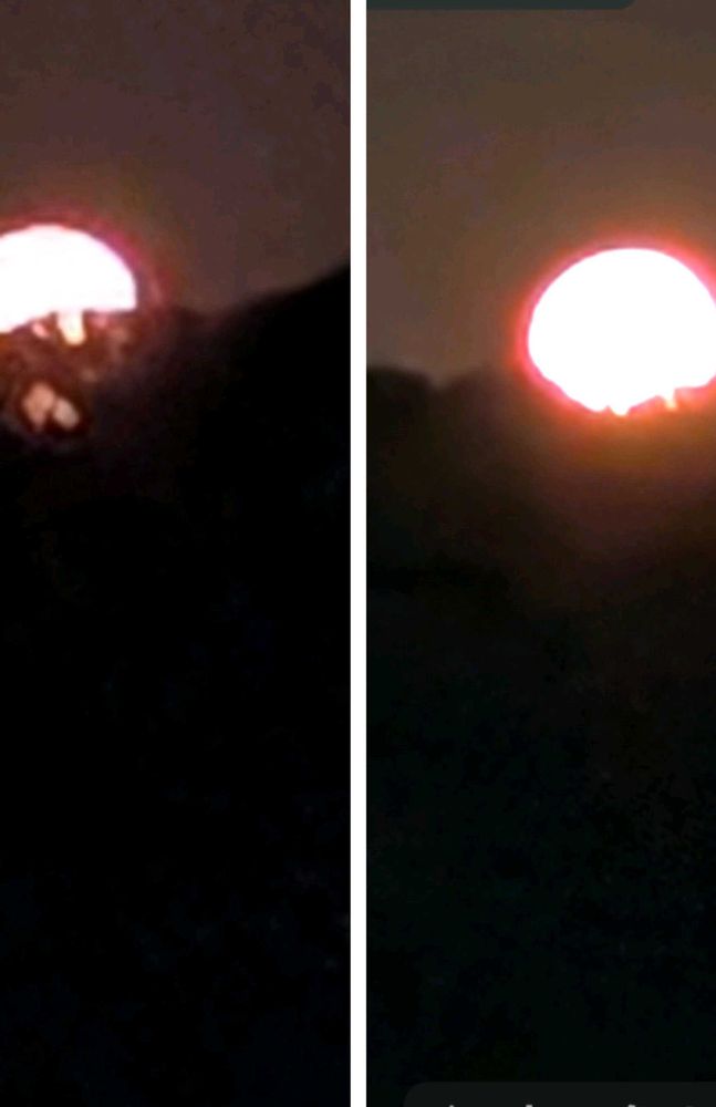 浅間山に🌕が沈む風景…山の尾根を照らしている風景は、双眼鏡で見て幻想的