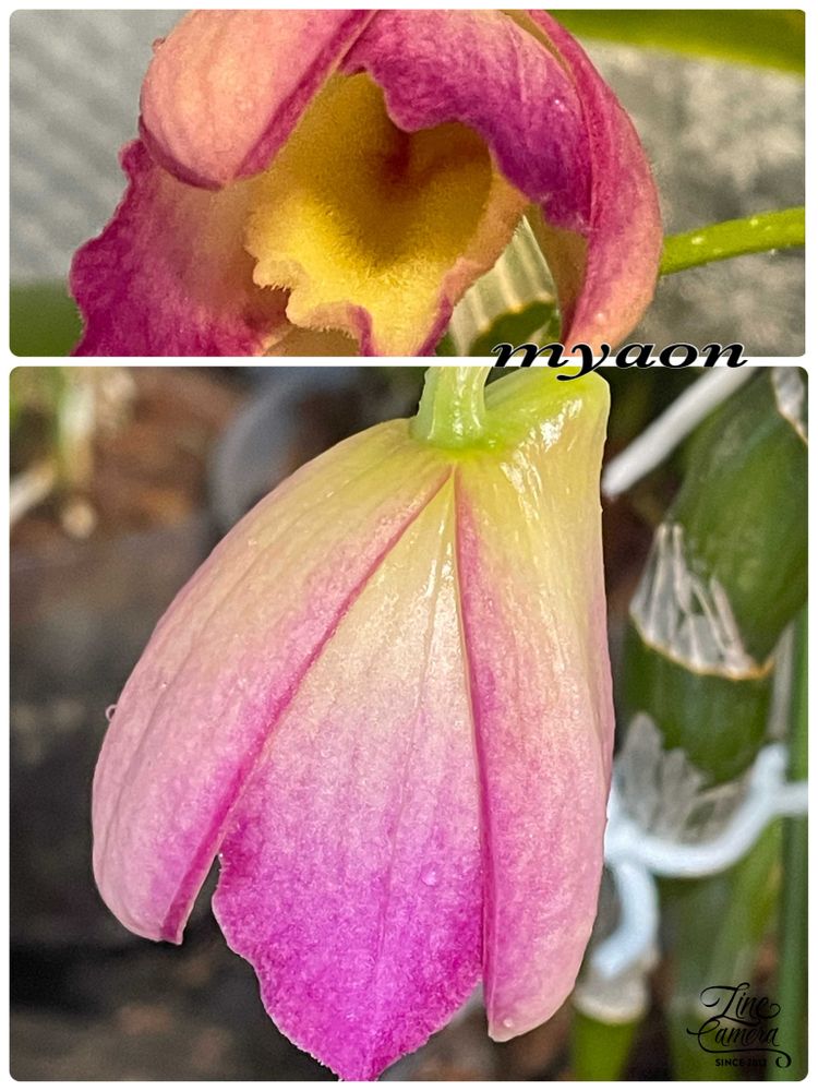 2枚目:Den. Oriental Smile 'Fantasy' AD & AM/AOS (Den. Fukujyu x Den. Yuubae)デンドロビウム オリエンタル スマイル “ファンタジー”ユーザーさんから頂いた株。3輪咲く予定だったけれど1輪カトレアの葉でスパッと狩ってしまった…時間と共にお花の色が変化するらしい。楽しみ🎶