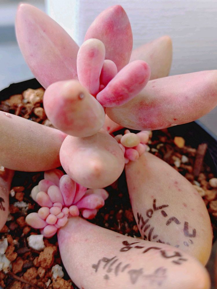 2024年3月22日に交配 2024年7月12日に結実した種を採取 2024年8月14日に種まき 2024年9月に発芽 その後、植え替えをして現在2025年7月に至る 今後の成長はアプリで記録 花が咲くまで継続