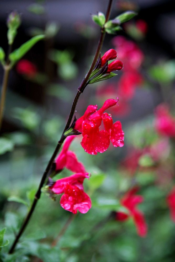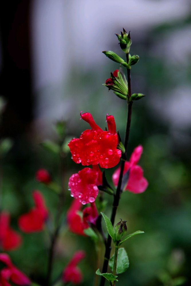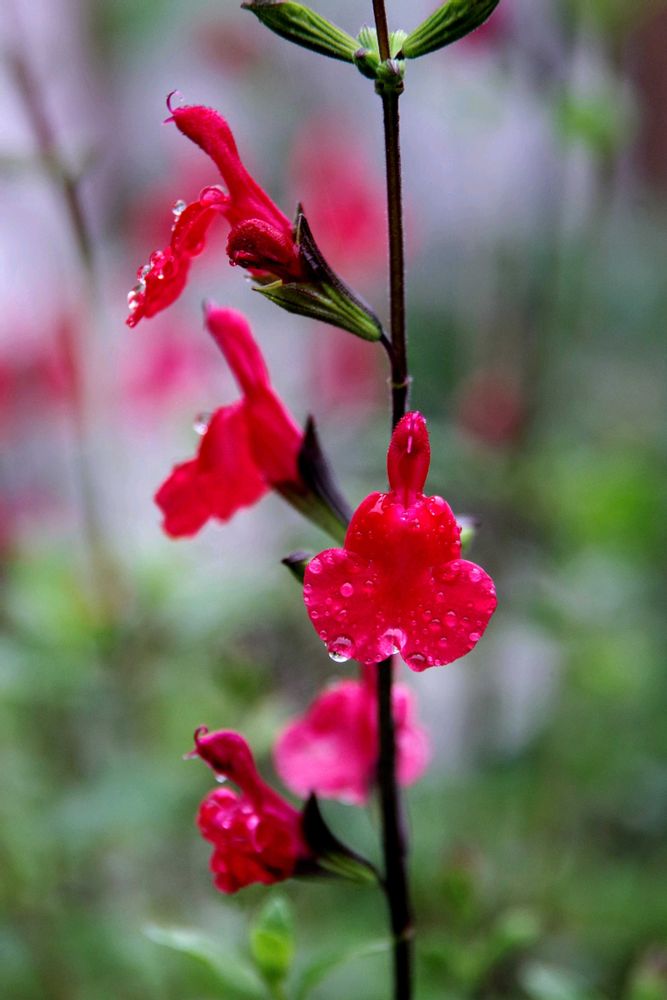 チェリーセージ,シソ科の多年草,雨の一日の投稿画像