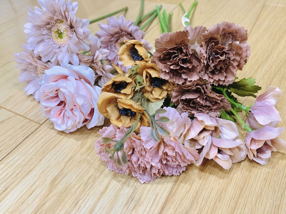 数年前は安っぽい粗雑なイメージで、コサージュを作る時には百均は選ばなかったのですが。今は色味がとってもかわいい!!!くすみ系だいすき!!!