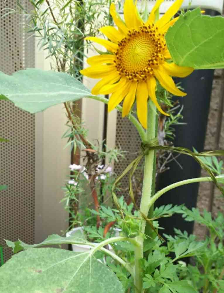 ミニひまわりのようです。茎にもたくさん蕾がついていて咲くのかな?って期待してます😃