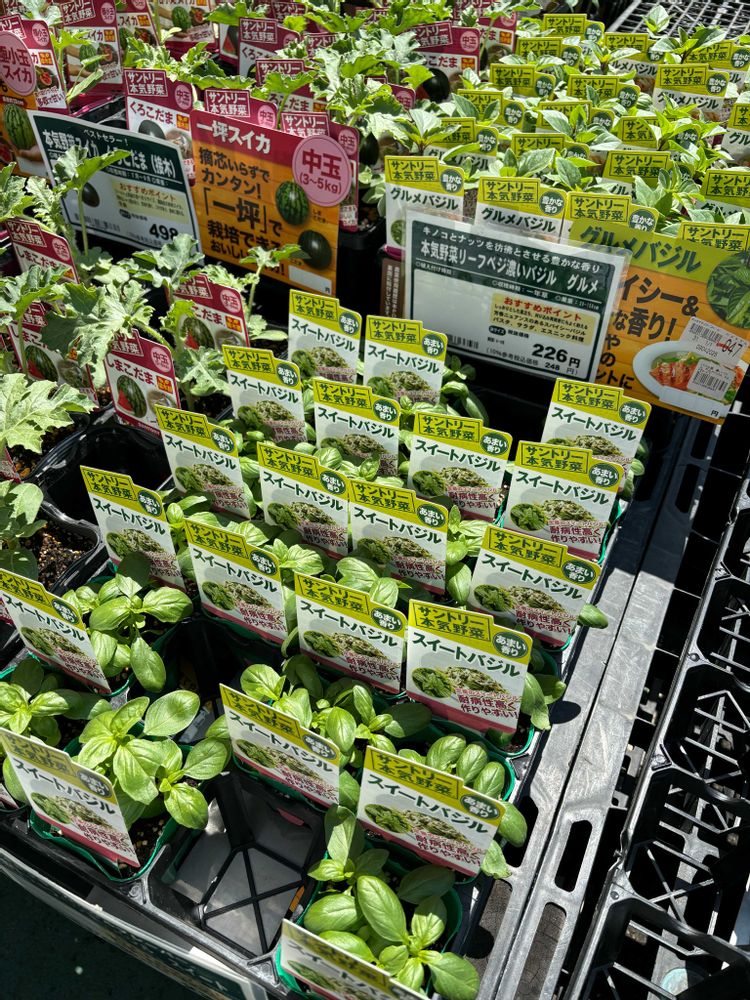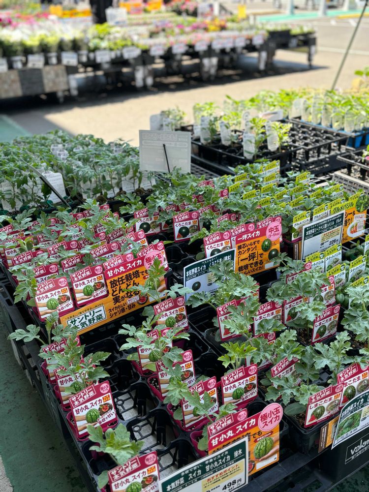 ホムセンバローでは、中長茄子、沖縄島唐辛子、アバヤシゴーヤ、サントリーの濃いグルメバジル、ピーマンのスイートパレルモ、サントリー甘小丸スイカを購入しました✨✨