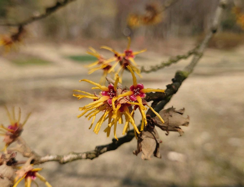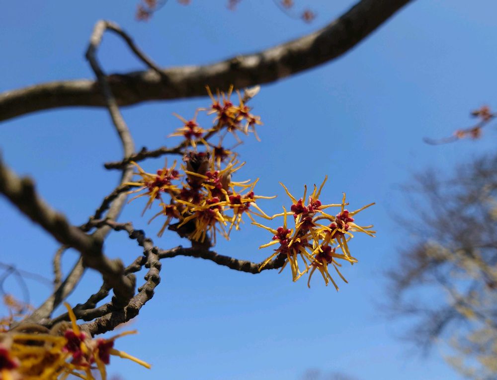 よく似たシナマンサクは、花期が早く1月頃から花が咲きます