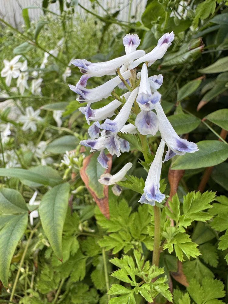 ムラサキケマンも筒部分が白っぽいものもありますがシロヤブケマンはハッキリ白いです。