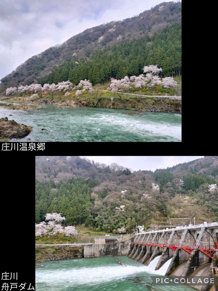②砺波の「嵐山」といわれ、山、川、桜のコントラストを楽しめます、