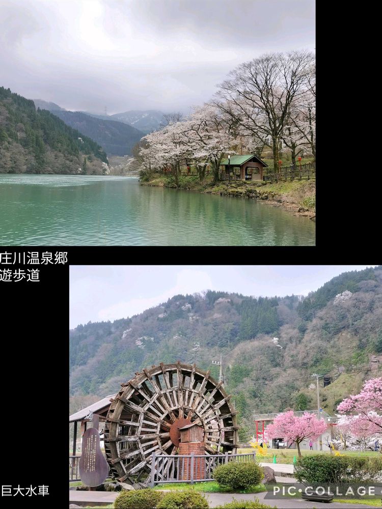 お土産屋さんのシンボルの巨大水車もほのぼの良い感じ🌸