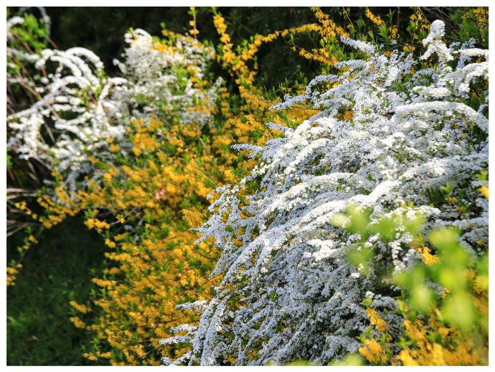 レンギョウとユキヤナギ💛🤍◝(⸝⸝•ᴗ•⸝⸝)◜..
