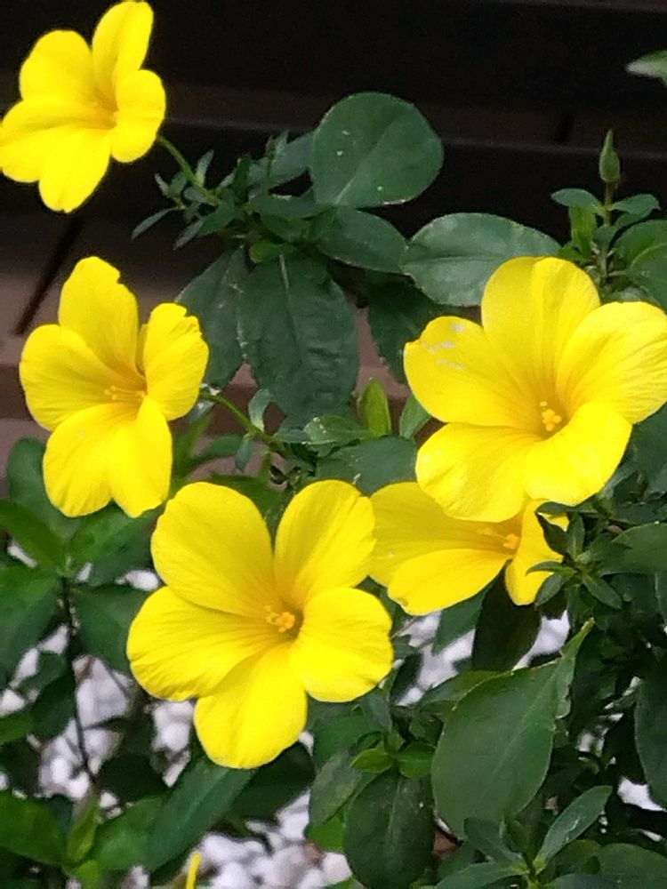 オウバイモドキの可愛らしい花が野鳥がついばみ車のうえに下に落ちています