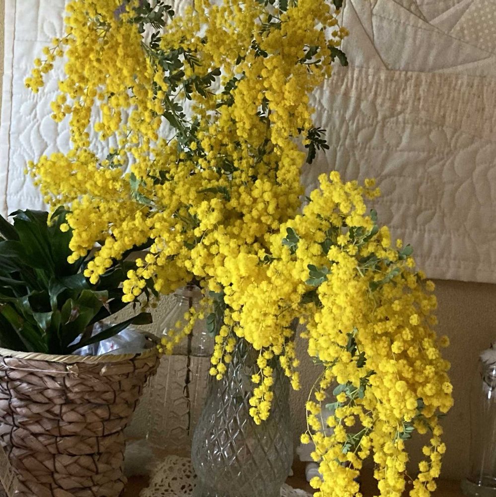ミモザアカシアを植えておられる家でワークショップやってました。高枝切りハサミ✂️で三本(300円)切ってもらいました。家で生けて後はドライフラワーのスワッグに挑戦したいと思います♪