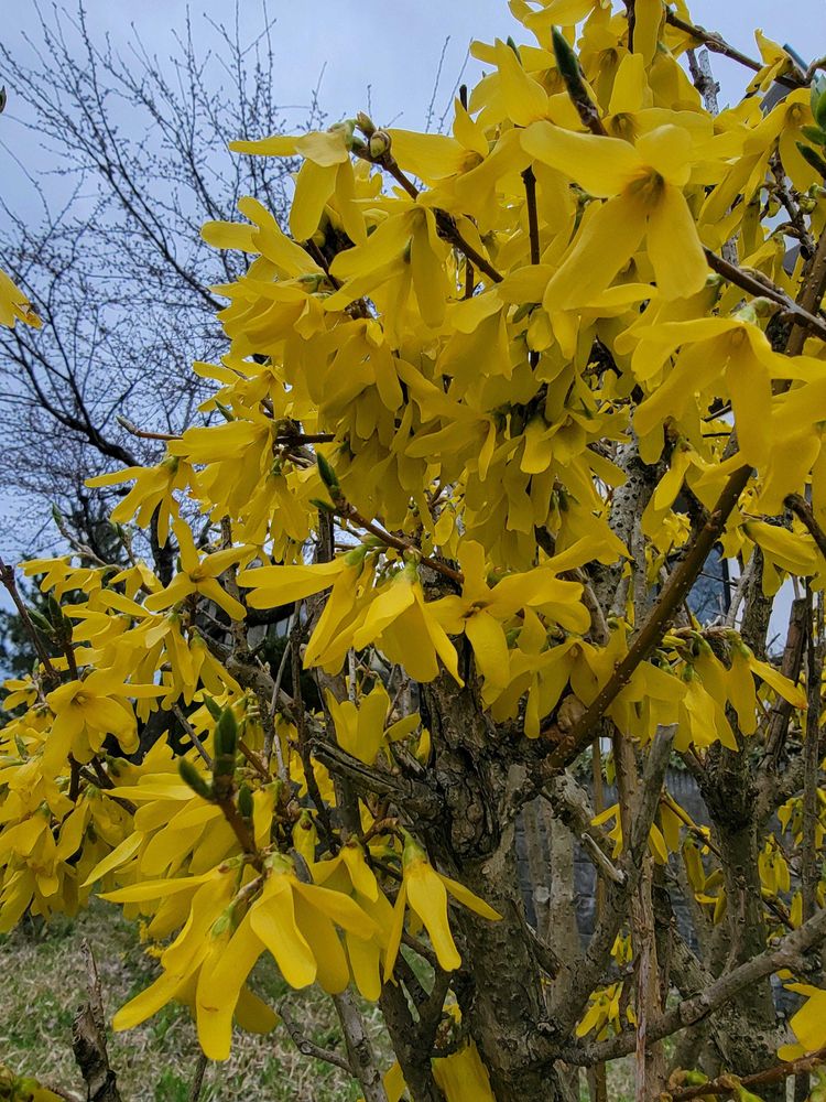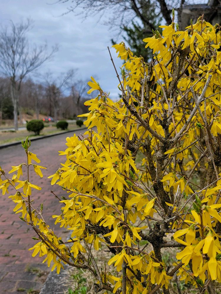 1️⃣2️⃣近所の街路樹 レンギョウ🟡満開です