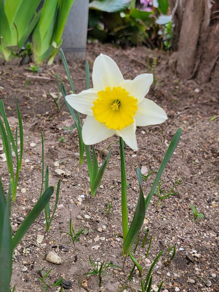 スイセン 咲いたのですが今日の雨でお辞儀してました😓