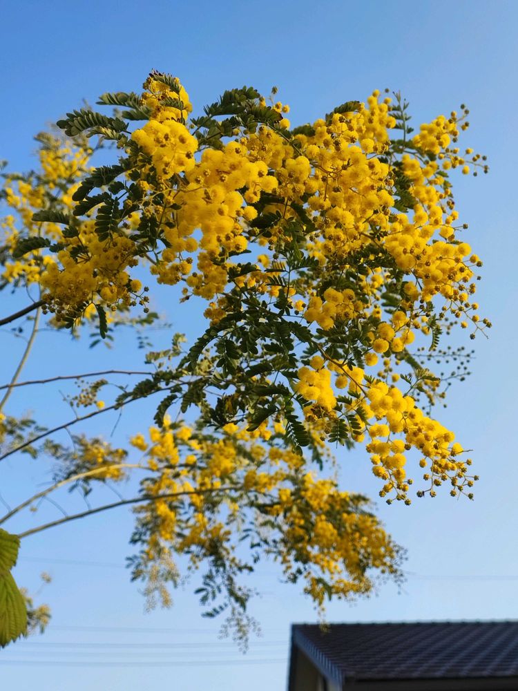 本日も朝は寒かったですが、日が昇って徐々に暖かくなってきました。地植えのミモザ(アカシア デアネイ)が今年はよく咲きました。ふわふわしていてさすがの可愛さです。