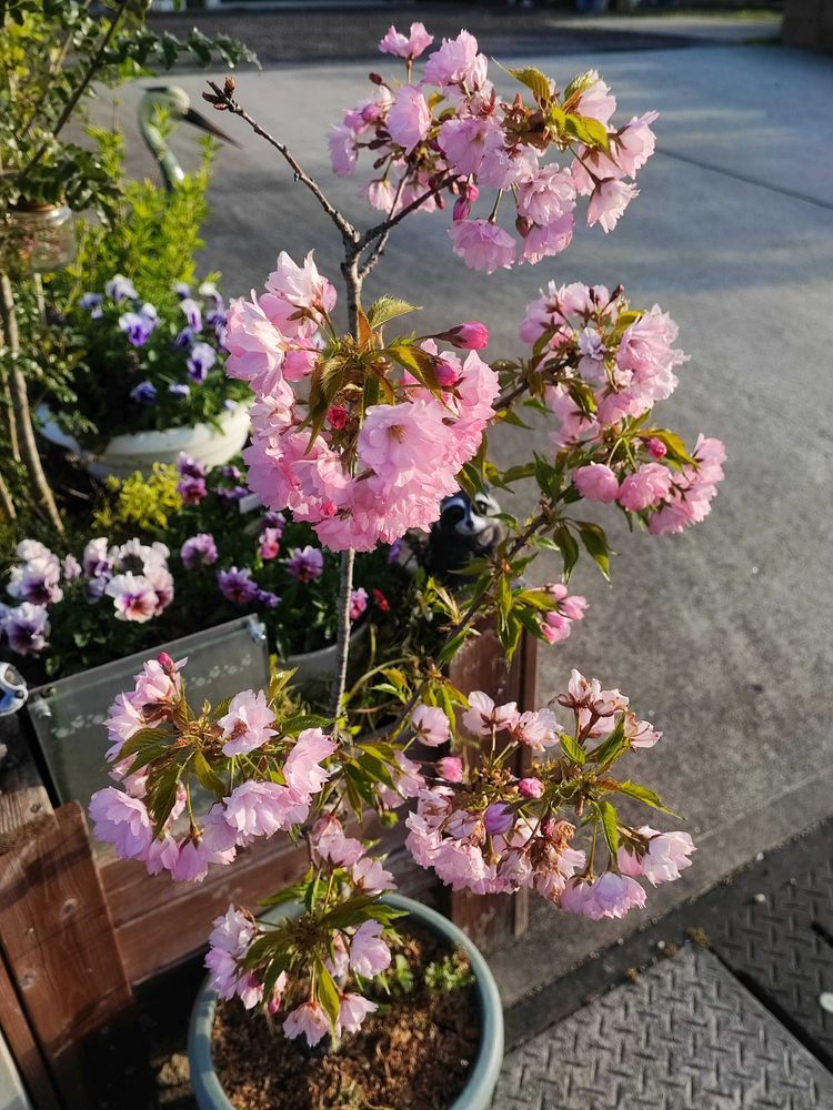 そろそろ見納めの旭山桜。葉桜になってきたくらいがいちばんかわいいと思うのは私だけでしょうか。もう少ししたら御礼肥を差し入れしておきましょう。