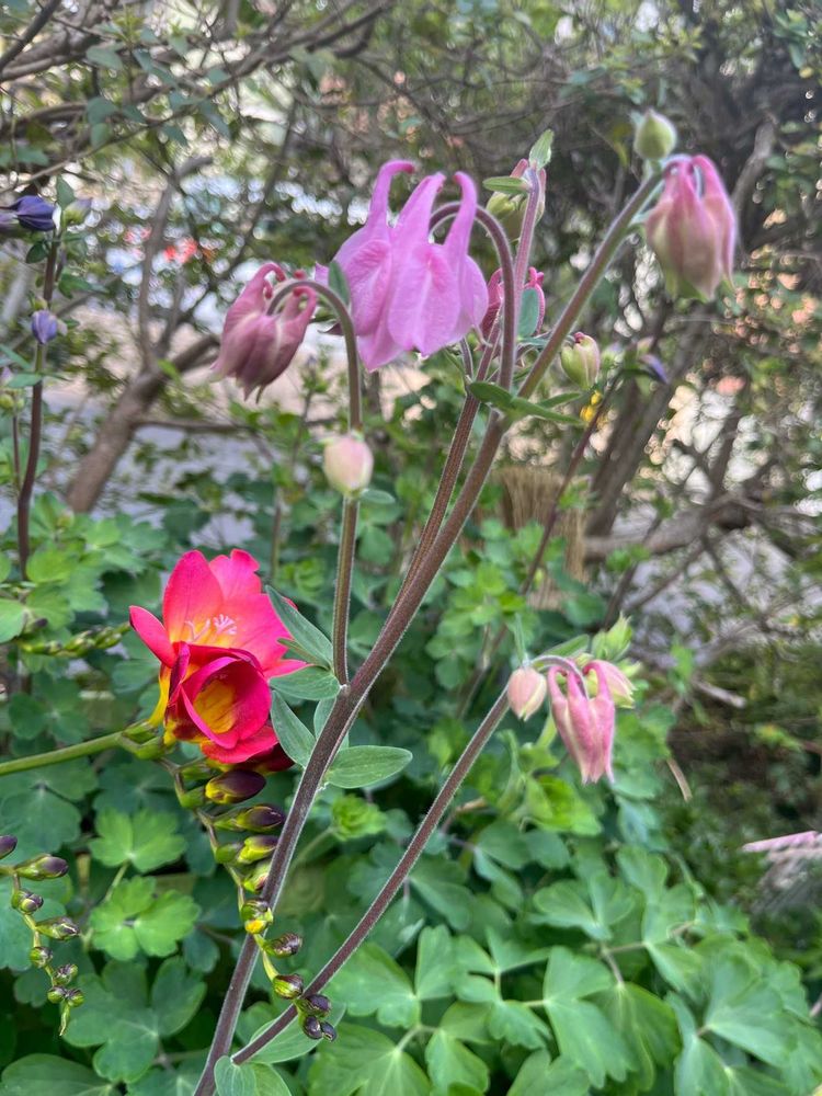 オダマキとフリージアの共演です、可愛い💠~🎶ですねー✨✨✨✨😃✌️