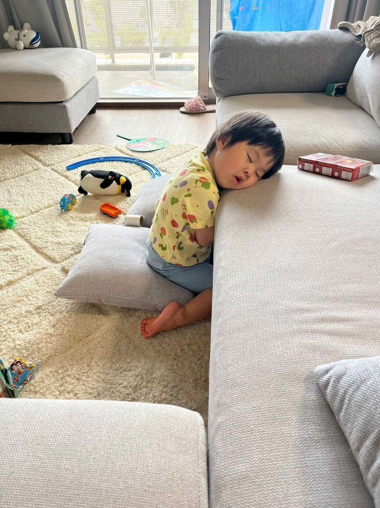 孫の寝姿の写真をジブリ風にしてみました( ᷇࿀ ᷆ )♡